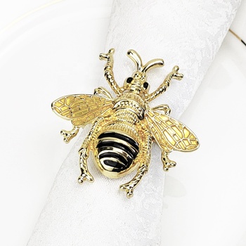 Luxury Gold Plated Bumble Bee Napkin Ring Handmade Round Design for Weddings Parties Table Decor Spring Insect Style Stocked