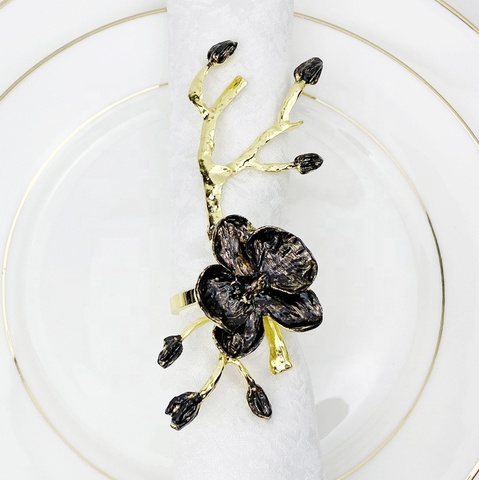 New Golden Black Orchid Flower Napkin Ring Black Wintersweet Flower Napkin Ring Black with White